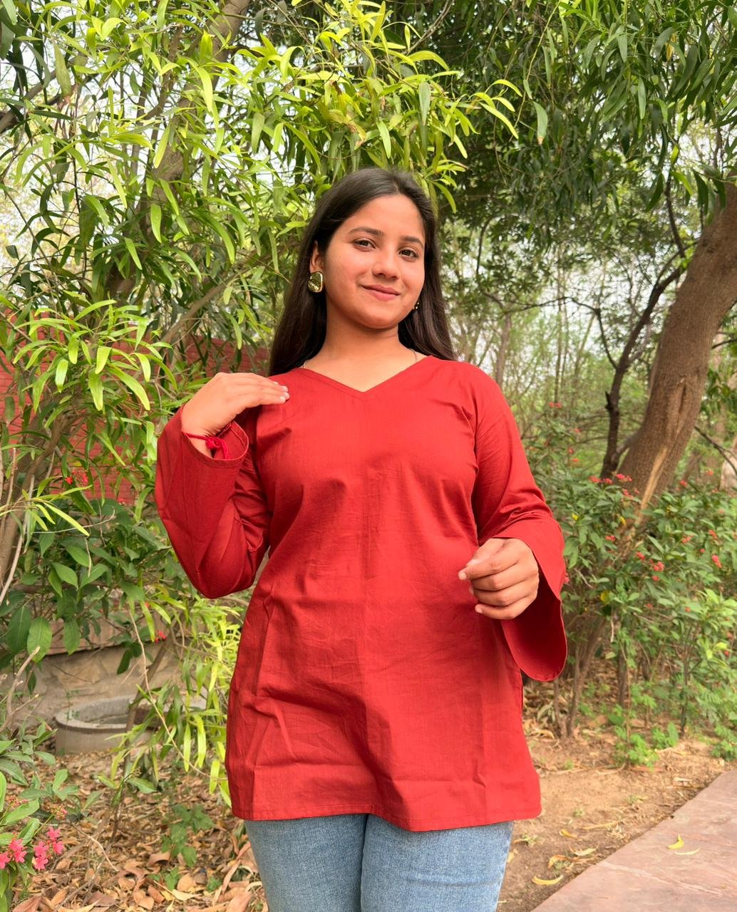 Laal Pari is all about understated elegance with a Gen-Z twist. Crafted in breathable cotton and detailed with a subtle Jaipuri print, this kurti features a clean V neckline and bell sleeves—perfect for girls who love fuss-free, polished everyday style. It’s simple, versatile, and designed to work from college mornings to office afternoons without missing a beat.✨ Why this kurti converts
